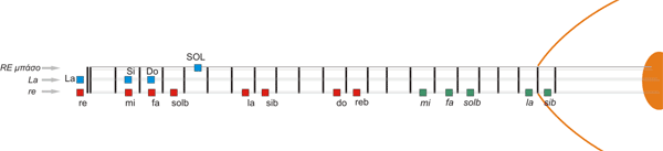 Do+ Re- Fa+ Solb+ Sib- και μερικές φορές στην κίνηση προς τα χαμηλά χρησιμοποείται το Sol+.